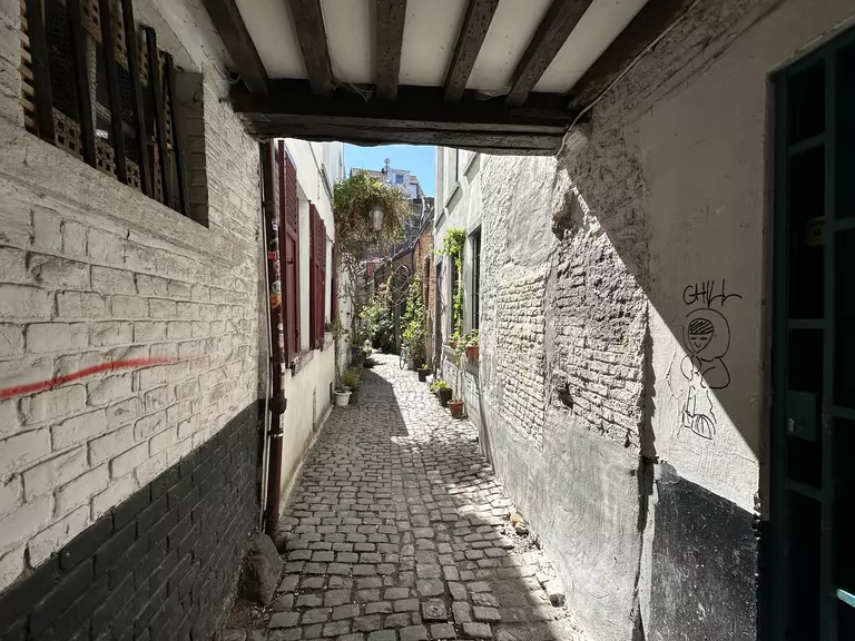 Il existe, à deux pas de l'agitation de la place Sainte-Catherine, un Bruxelles que peu de gens connaissent. Rejoignez-nous devant l'Institut De Mot-Couvreur pour une exploration des passages étroits, des impasses oubliées et des ruelles discrètes qui se glissent entre la rue de Flandre et les quais. Ici, la ville change de rythme. Les bruits s'étouffent, les façades se resserrent, et l'on a l'impression de remonter le temps.